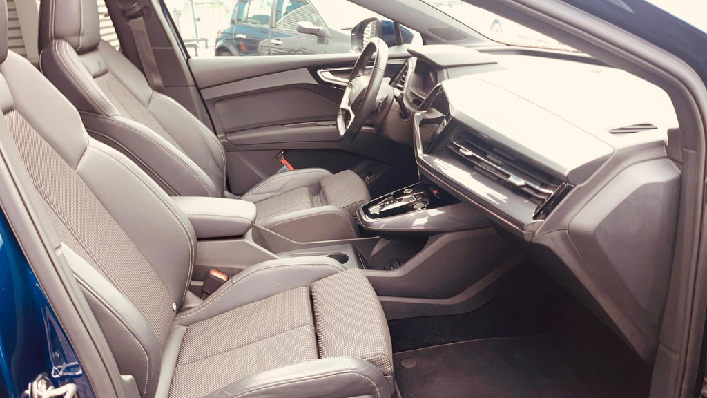Algemene informatie: Merk: Audi. Model: Q4 e-tron. Type: 40 Launch edition S Competition 77 kWh 2X S-LINE PANO l MATRIX l CAMERA l ADAPT.CRUISE l ORG.NL l DEALER OND. Aantal deuren: 5. Aandrijving: Actieradius: 520 km. Asconfiguratie: Aandrijving: Achterwielaandrijving. Bandenmaat voor: 235/55 R20. Bandenmaat achter: 255/50 R20. Prestaties: Acceleratie (0-100): 8,5 s. Topsnelheid: 160 km/u. Maten: Afmetingen (LxBxH): 459 x 187 x 163 cm. Wielbasis: 277 cm. Gewichten: Ledig gewicht: 2.025 kg. Laadvermogen: 615 kg. GVW: 2.640 kg. Max. trekgewicht: 1.000 kg (ongeremd 750 kg). Accu: Aanwezige accu: gekocht. Accu: 77 kWh, Conditie: 90%. Accu laden: Type 2, 3-fasen, 11 kW, 78 km actieradius per...