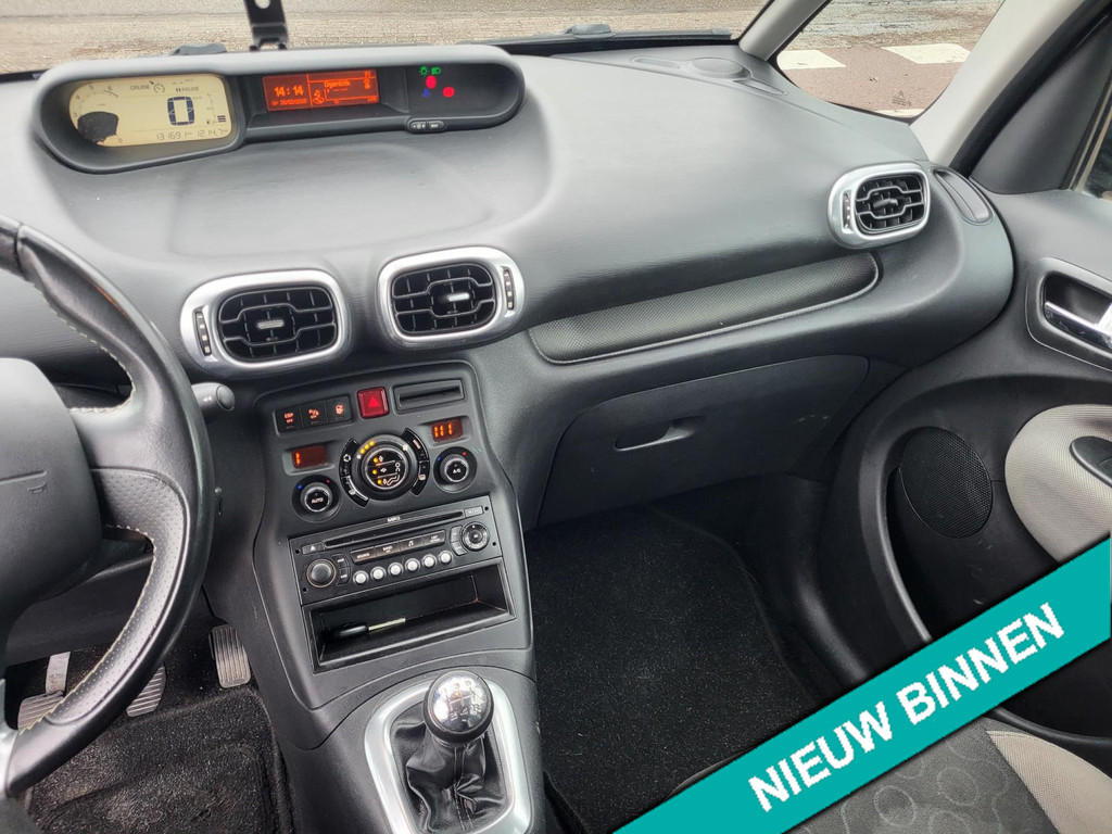 Algemene informatie: Merk: Citroen. Model: C3 Picasso. Type: 1.6 VTi Aura NWE DISTRIBUTIE SET. Aantal deuren: 5. Technische informatie: Aantal cilinders: 4. Motorinhoud: 1.598 cc. Transmissie: 5 versnellingen, Handgeschakeld. Aandrijving: Voorwielaandrijving. Acceleratie (0-100): 11,7 s. Topsnelheid: 188 km/u. Maten: Wielbasis: 254 cm. Gewichten: Ledig gewicht: 1.265 kg. Laadvermogen: 488 kg. GVW: 1.753 kg. Max. trekgewicht: 1.100 kg (ongeremd 675 kg). Interieur: Interieur: Donkerblauw, Stof. Aantal zitplaatsen: 5. Milieu: CO₂-uitstoot: 159 g/km. Onderhoud, historie en staat: APK: Nieuwe APK bij aflevering. Aantal sleutels: 2 (2 handzenders). Financiële informatie...: