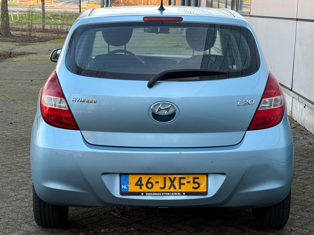 Algemene informatie: Merk: Hyundai. Model: I20. Type: 1.4i DynamicVersion Airco |Stuurbed |Electr Ramen |Nap. Aantal deuren: 5. Technische informatie: Aantal cilinders: 4. Motorinhoud: 1.396 cc. Aandrijving: Voorwielaandrijving. Acceleratie (0-100): 11,6 s. Topsnelheid: 180 km/u. Maten: Wielbasis: 253 cm. Gewichten: Ledig gewicht: 1.010 kg. Laadvermogen: 555 kg. GVW: 1.565 kg. Max. trekgewicht: 1.000 kg (ongeremd 450 kg). Interieur: Aantal zitplaatsen: 5. Milieu: CO₂-uitstoot: 133 g/km. Energielabel: B. Emissieklasse: Euro 4. Verbruik: Gemiddeld brandstofverbruik: 5,6 l/100km (1 op 17,9). Brandstofverbruik in de stad: 7,2 l/100km (1 op 13,9). Brandstofverbruik op de snelweg: 4,7 l/100km...