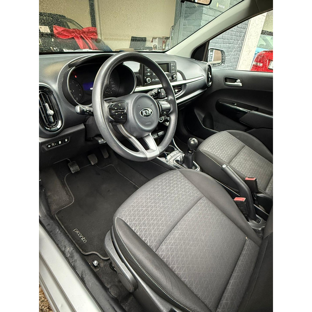 Algemene informatie: Merk: Kia. Model: Picanto. Type: 1.0 CVVT ComfortLine | Dealer onderhouden. Aantal deuren: 5. Technische informatie: Aantal cilinders: 3. Motorinhoud: 998 cc. Transmissie: 5 versnellingen, Handgeschakeld. Aandrijving: Voorwielaandrijving. Acceleratie (0-100): 14,5 s. Topsnelheid: 158 km/u. Maten: Afmetingen (LxBxH): 360 x 160 x 149 cm. Wielbasis: 240 cm. Gewichten: Ledig gewicht: 830 kg. Laadvermogen: 470 kg. GVW: 1.300 kg. Interieur: Interieur: Zwart, Stof. Aantal zitplaatsen: 4. Milieu: CO₂-uitstoot: 90 g/km. Energielabel: B. Emissieklasse: Euro 6. Verbruik: Gemiddeld brandstofverbruik: 4 l/100km (1 op 25,0). Brandstofverbruik in de stad: 5 l/100km (1 op 20,0)...
