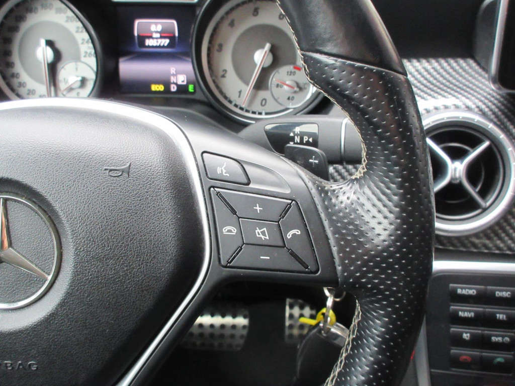 Algemene informatie: Merk: Mercedes-Benz. Model: CLA-klasse. Type: 200 AMG Automaat Leer Navi Camera. Carrosserievorm: Sedan. Technische informatie: Aantal cilinders: 4. Motorinhoud: 1.595 cc. Aandrijving: Voorwielaandrijving. Bandenmaat: 225/40 R18. Acceleratie (0-100): 8,5 s. Topsnelheid: 230 km/u. Maten: Wielbasis: 270 cm. Gewichten: Ledig gewicht: 1.330 kg. Laadvermogen: 585 kg. GVW: 1.915 kg. Max. trekgewicht: 1.400 kg (ongeremd 715 kg). Interieur: Aantal zitplaatsen: 5. Milieu: CO₂-uitstoot: 126 g/km. Energielabel: A. Emissieklasse: Euro 6. Verbruik: Gemiddeld brandstofverbruik: 5,1 l/100km (1 op 19,6). Staat: Aantal sleutels: 2 (2 handzenders). Financiële informatie...:
