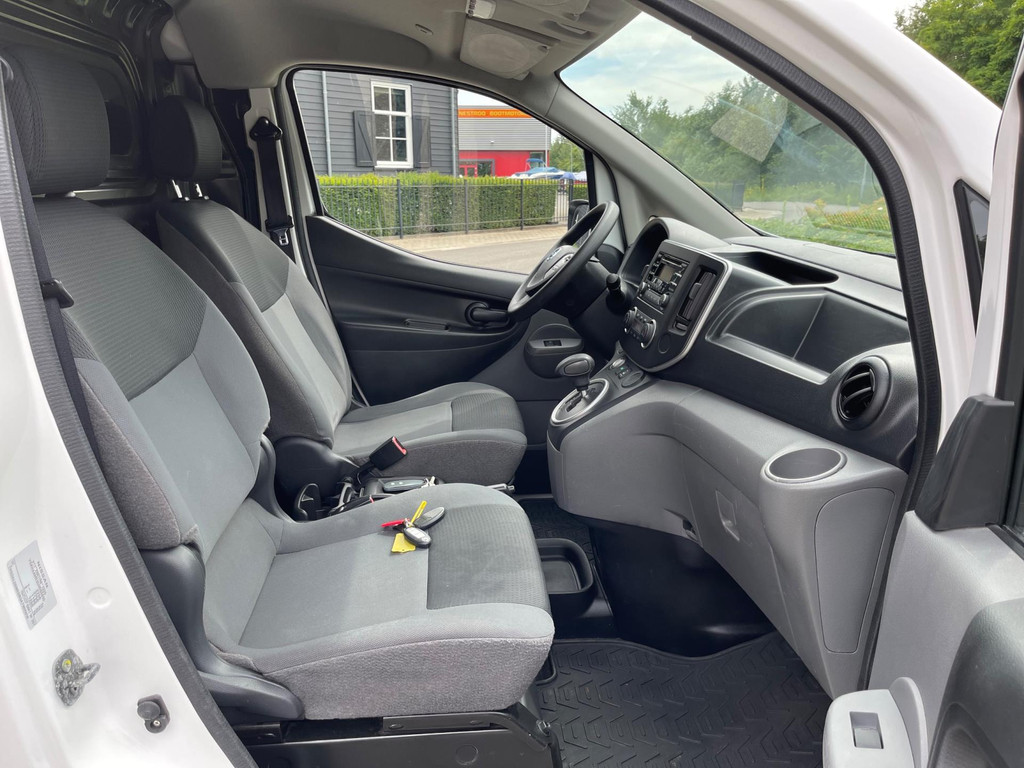 Algemene informatie: Merk: Nissan. Model: E-NV200. Type: Optima Schuifdeur. Aantal deuren: 4. Technische informatie: Aandrijving: Voorwielaandrijving. Actieradius: 105 km. Acceleratie (0-100): 14,0 s. Topsnelheid: 123 km/u. Aanwezige accu: gekocht. Maten: Wielbasis: 272 cm. Gewichten: Ledig gewicht: 1.455 kg. Laadvermogen: 795 kg. GVW: 2.250 kg. Interieur: Interieur: Stof, Stof. Aantal zitplaatsen: 2. Onderhoud, historie en staat: APK: Nieuwe APK bij aflevering. Aantal sleutels: 2 (2 handzenders). Financiële informatie: BTW: De getoonde prijs is exclusief BTW. Motorrijtuigenbelasting: geen. Beschikbare afleverpakketten: : Basis Afleverpakket (€ 395): Dit afleverpakket bevat:...