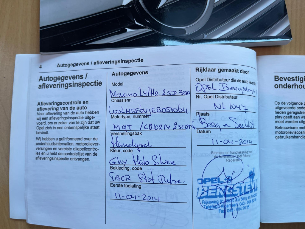 Algemene informatie: Merk: Opel. Model: Movano. Type: 2.3 CDTI L4 H2 DUBBELCABINE 6PERSOONS DUBBEL- LUCHT AIRCO CAMERA NAVI. Aantal deuren: 5. Technische informatie: Aantal cilinders: 4. Motorinhoud: 2.299 cc. Transmissie: 6 versnellingen, Handgeschakeld. Aandrijving: Voorwielaandrijving. Topsnelheid: 154 km/u. Maten: Wielbasis: 433 cm. Gewichten: Ledig gewicht: 2.548 kg. Laadvermogen: 952 kg. GVW: 3.500 kg. Interieur: Interieur: Zwart, Stof. Aantal zitplaatsen: 6. Milieu: CO₂-uitstoot: 232 g/km. Emissieklasse: Euro 5. Verbruik: Gemiddeld brandstofverbruik: 8,9 l/100km (1 op 11,2). Brandstofverbruik in de stad: 9,1 l/100km (1 op 11,0). Brandstofverbruik op de snelweg: 8,7 l/100km (1 op...