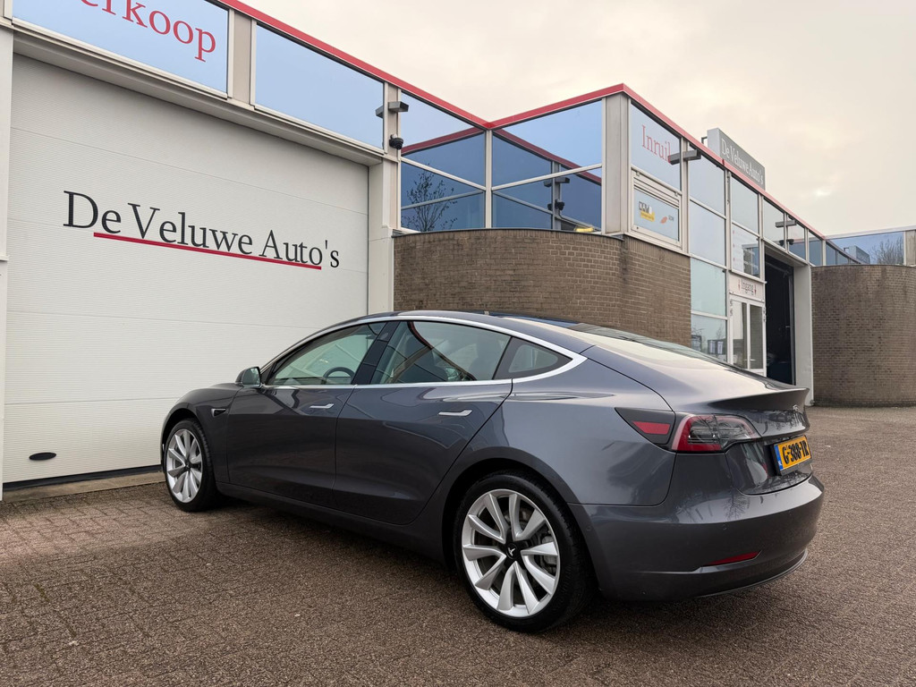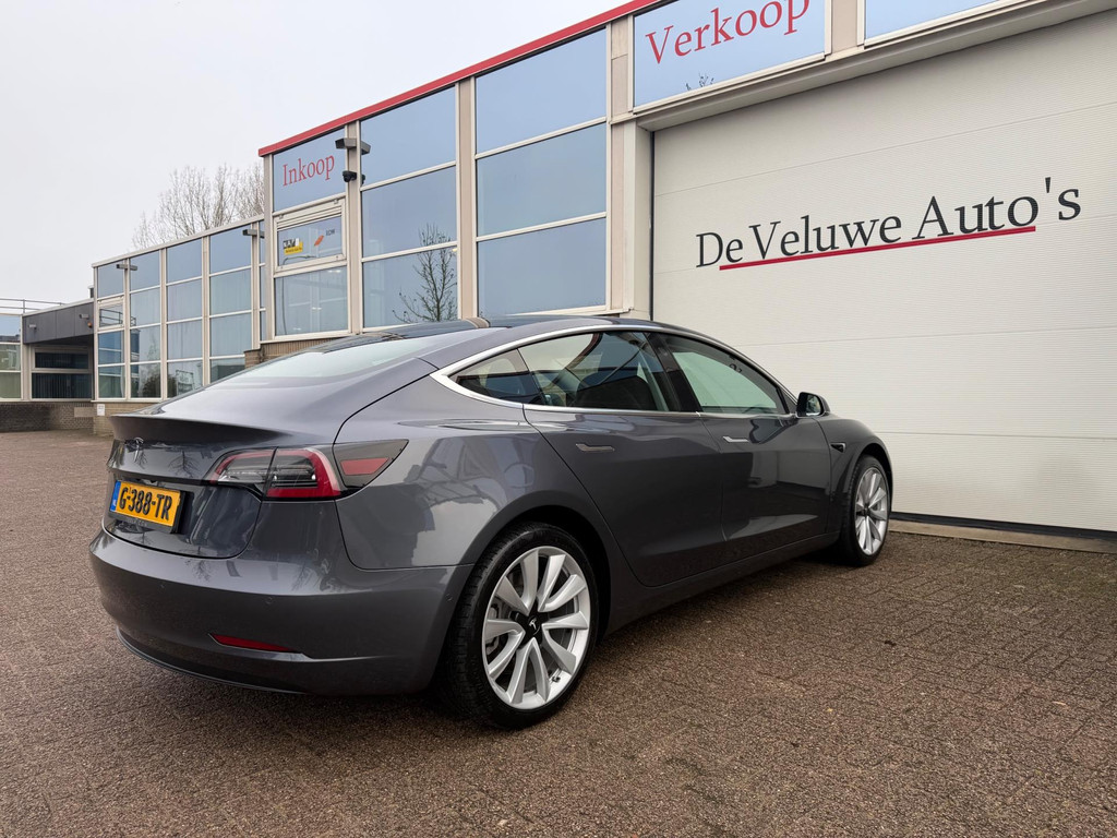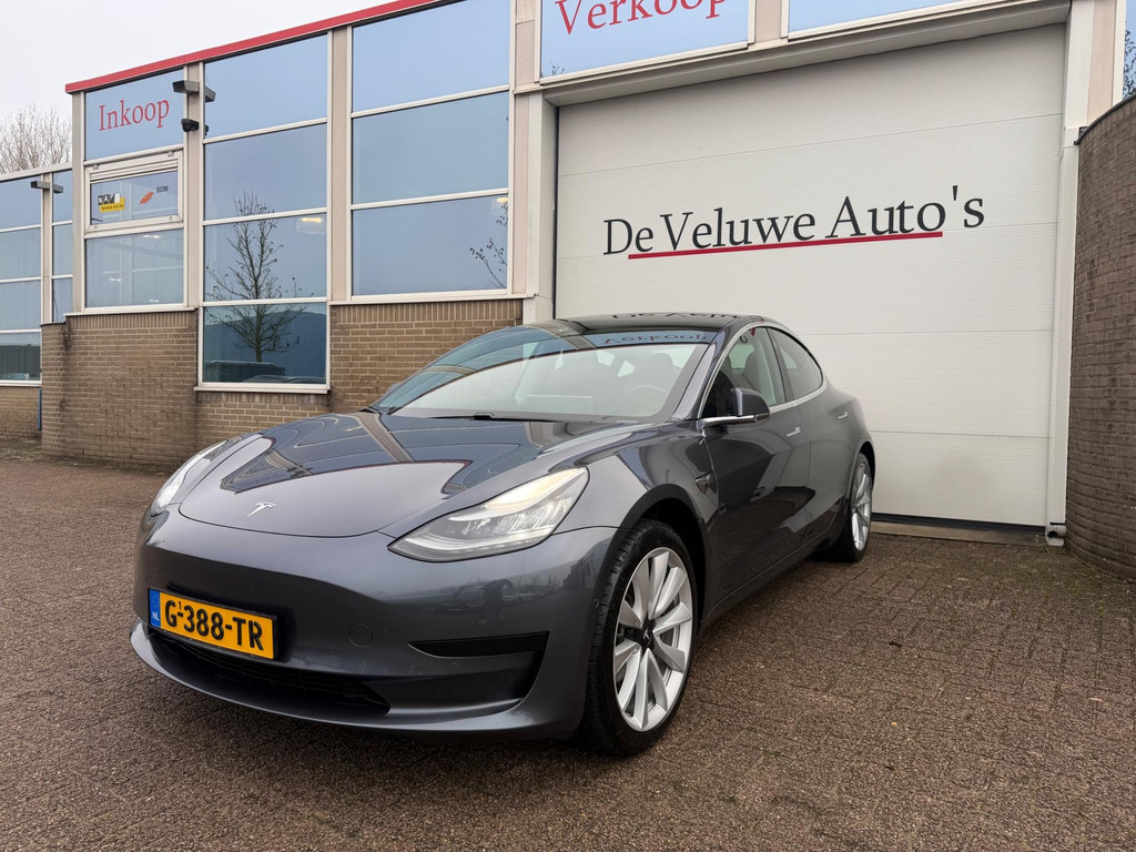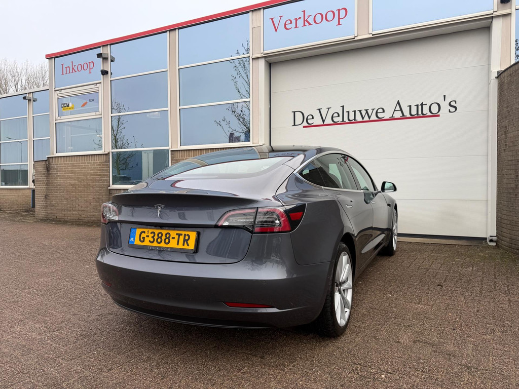 Algemene informatie: Merk: Tesla. Model: Model 3. Type: Standard RWD Plus 60 kWh|Autopilot|Panorama|. Aantal deuren: 5. Aandrijving: Actieradius: 370 km. Asconfiguratie: Aandrijving: Achterwielaandrijving. Bandenmaat: 235/45 R18. Prestaties: Acceleratie (0-100): 5,6 s. Topsnelheid: 225 km/u. Maten: Afmetingen (LxBxH): 469 x 185 x 144 cm. Wielbasis: 288 cm. Gewichten: Ledig gewicht: 1.584 kg. Laadvermogen: 476 kg. GVW: 2.060 kg. Accu: Accu: 55 kWh. Accu laden: Type 2, 3-fasen, 11 kW, 77 km actieradius per uur, compleet vol in 15 uur en 16 minuten. Accu snelladen: Combined Charging System, 527 km actieradius per uur, compleet vol in 2 uur en 30 minuten. Interieur: Interieur: Zwart, Leder...