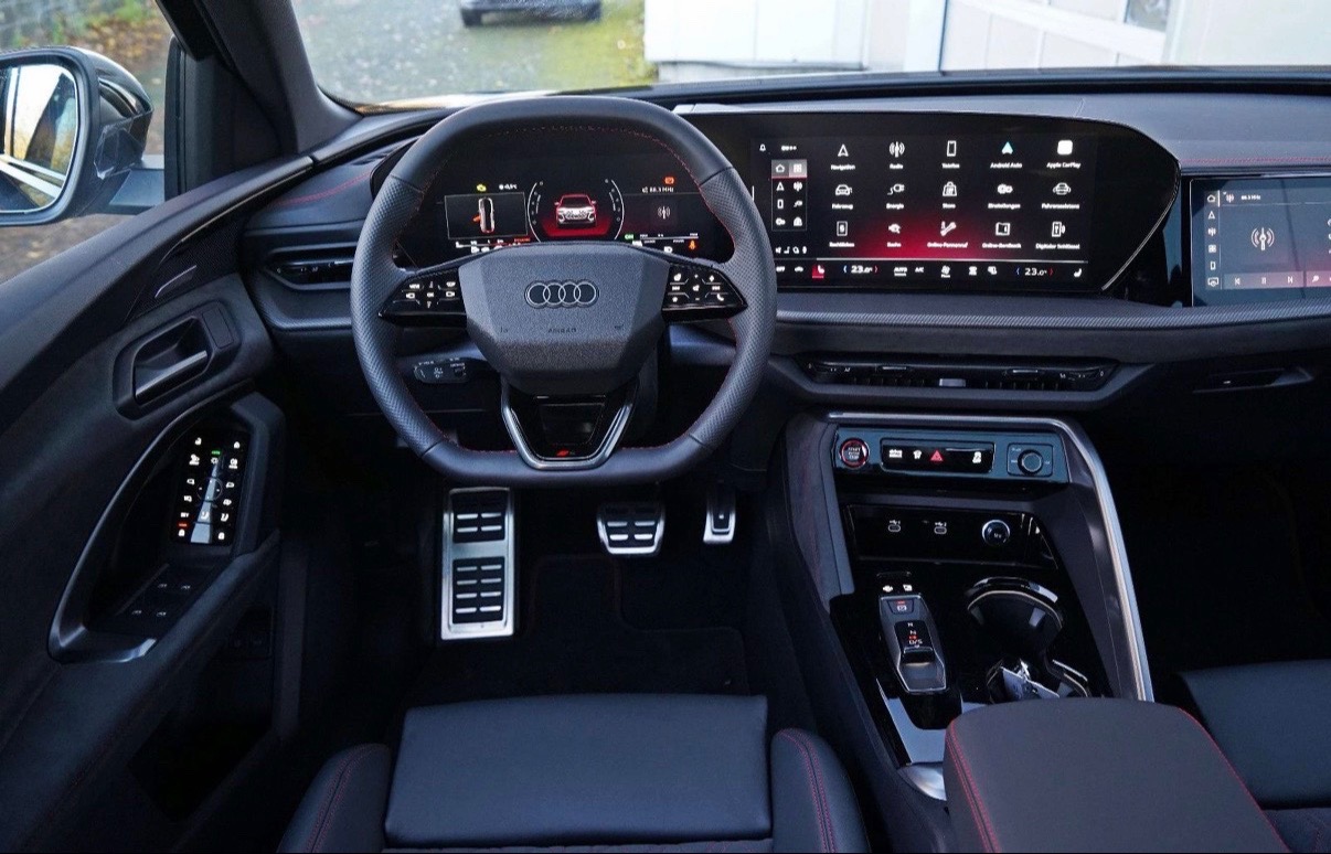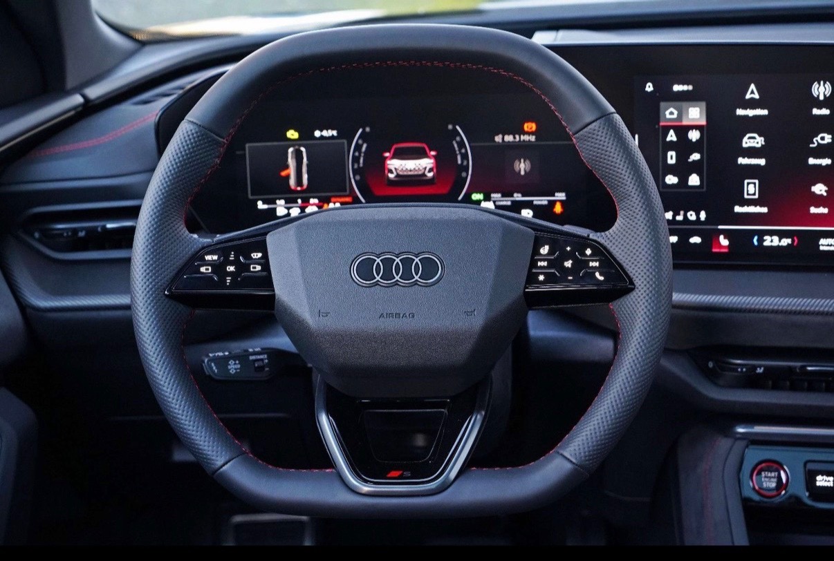 Te zien op de foto’s: het enorme centrale display, de digitale cockpit, de verschillende rijmodi (EV / hybrid / dynamic), de premium afwerking, en het strakke stuurwiel met rode stiknaden.