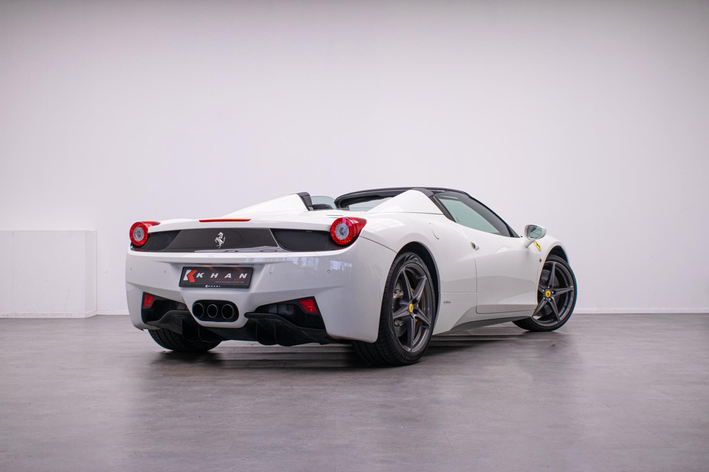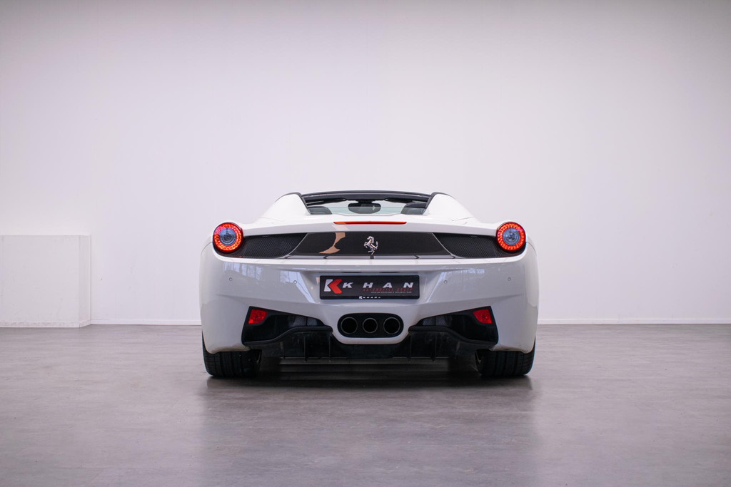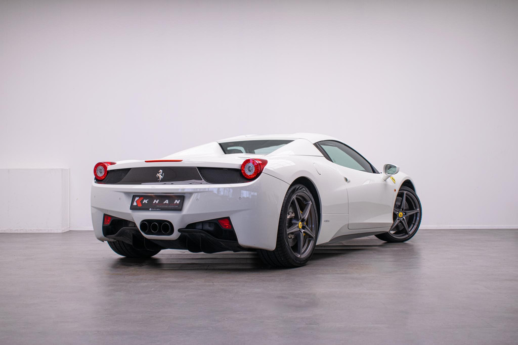 Algemene informatie: Merk: Ferrari. Model: 458. Type: 4.5 V8 Italia. Aantal deuren: 2. Modelreeks: 2010 - 2015. Technische informatie: Koppel: 540 Nm. Aantal cilinders: 8. Motorinhoud: 4.497 cc. Transmissie: 7 versnellingen, Automaat. Aandrijving: Achterwielaandrijving. Acceleratie (0-100): 3,4 s. Topsnelheid: 325 km/u. Maten: Wielbasis: 265 cm. Gewichten: Ledig gewicht: 1.540 kg. Laadvermogen: 295 kg. GVW: 1.835 kg. Interieur: Bekleding: Stof. Aantal zitplaatsen: 2. Milieu: CO₂-uitstoot (NEDC): 307 g/km. Fijnstofuitstoot: 2 mg/km. Energielabel: G. Emissieklasse: Euro 5. Verbruik: Gemiddeld brandstofverbruik: 13,3 l/100km (1 op 7,5). Brandstofverbruik in de stad: 19,7 l/100km (1 op 5,1)...