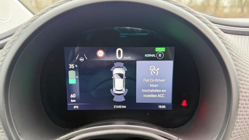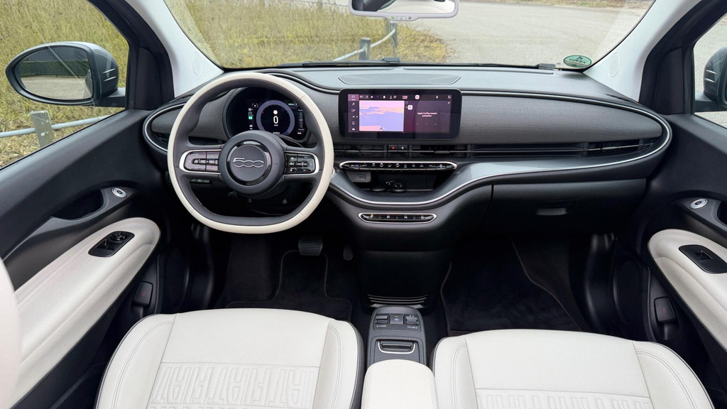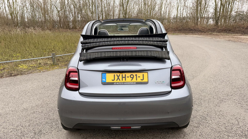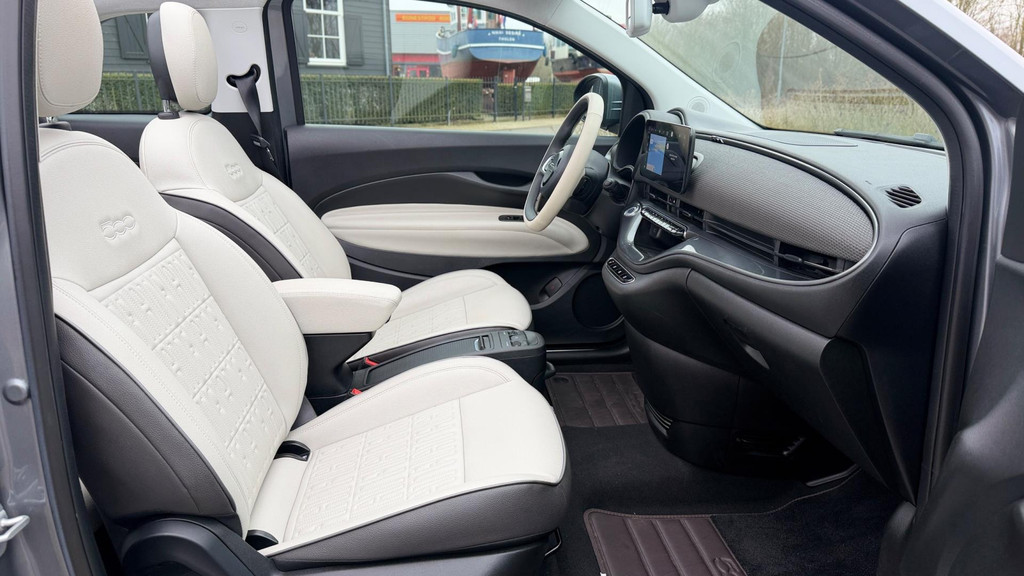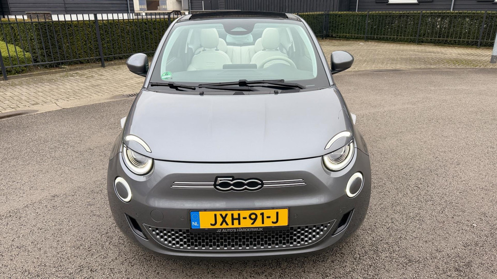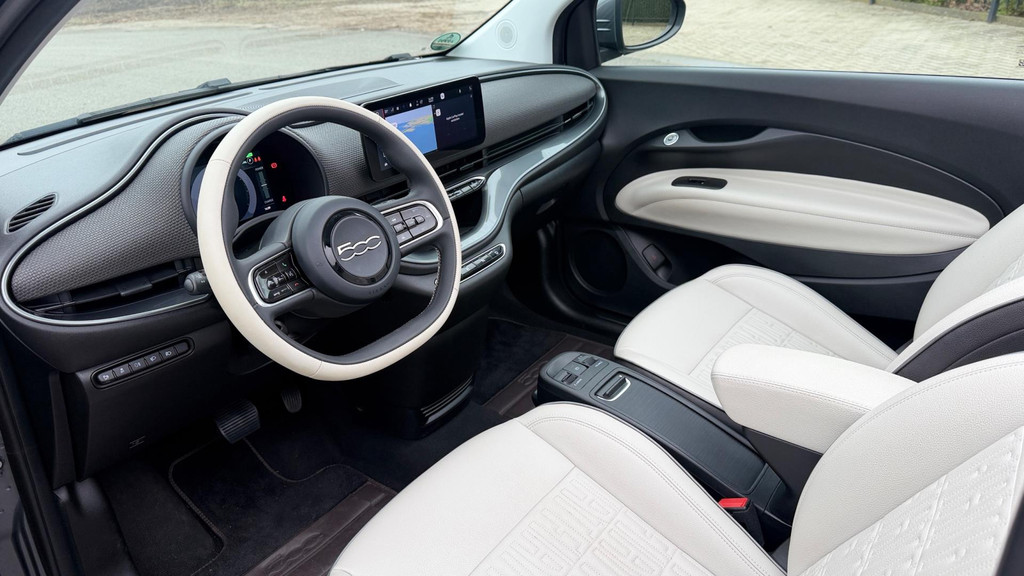 Algemene informatie: Merk: Fiat. Model: 500 C. Type: La Prima 42 kW CABRIO CAMERA CARPLAY LEER NAVI LED-XENON. Aantal deuren: 2. Aandrijving: Actieradius: 321 km. Asconfiguratie: Aandrijving: Voorwielaandrijving. Bandenmaat: 205/45 R17. Prestaties: Acceleratie (0-100): 9,0 s. Topsnelheid: 150 km/u. Maten: Afmetingen (LxBxH): 363 x 168 x 153 cm. Wielbasis: 232 cm. Gewichten: Ledig gewicht: 1.305 kg. Laadvermogen: 425 kg. GVW: 1.730 kg. Accu: Aanwezige accu: gekocht. Accu: 42 kWh. Accu laden: Type 2, 3-fasen, 11 kW, 88 km actieradius per uur, compleet vol in 11 uur en 40 minuten. Accu snelladen: Combined Charging System, 425 km actieradius per uur, compleet vol in 1 uur en 54 minuten...