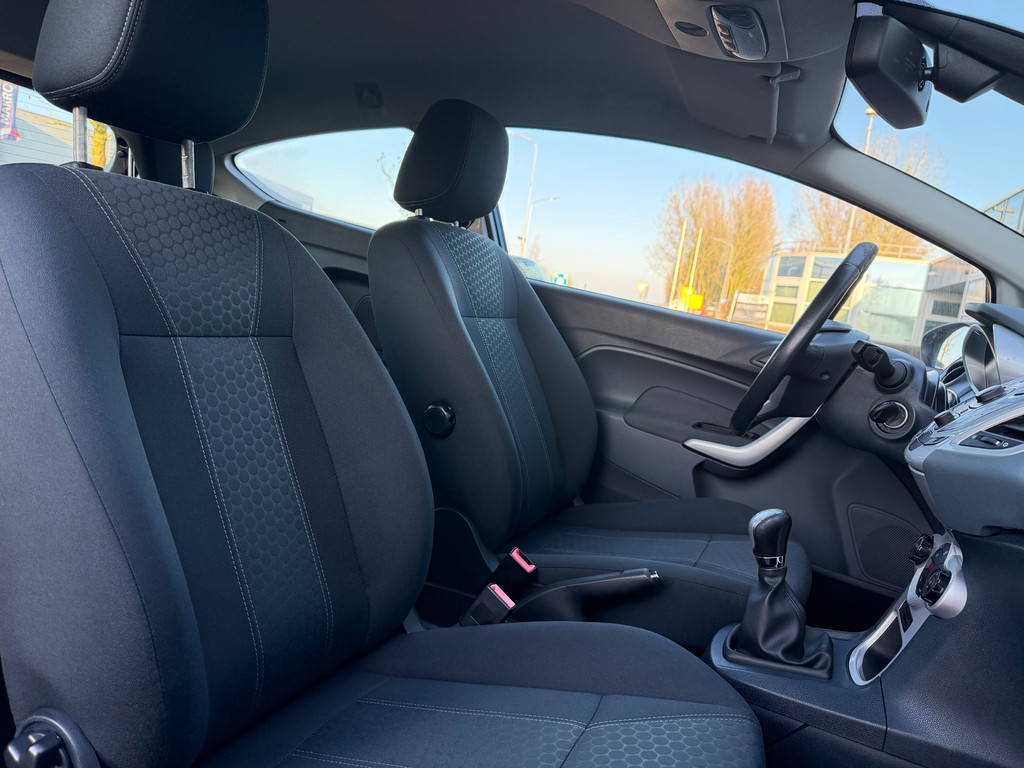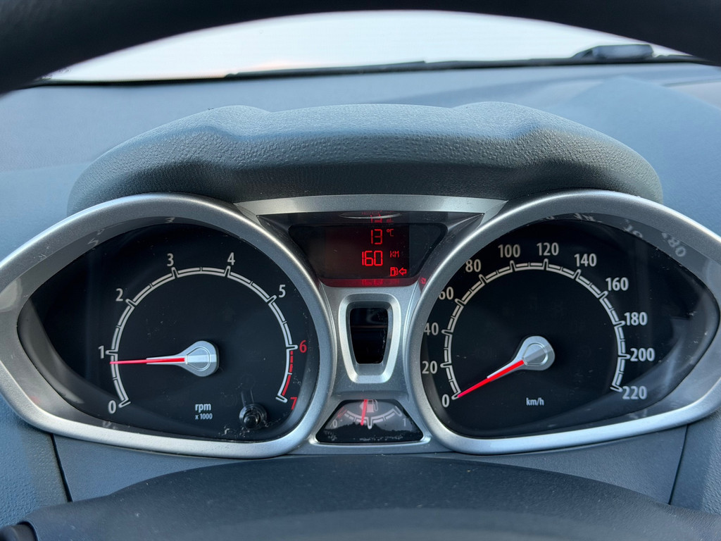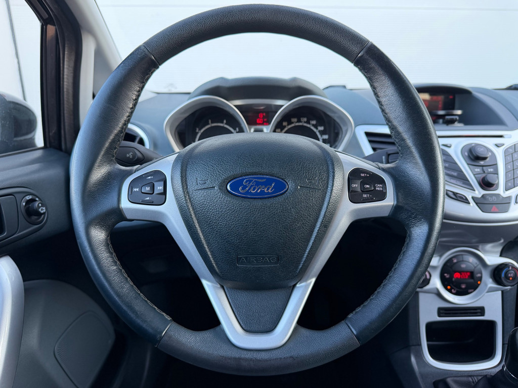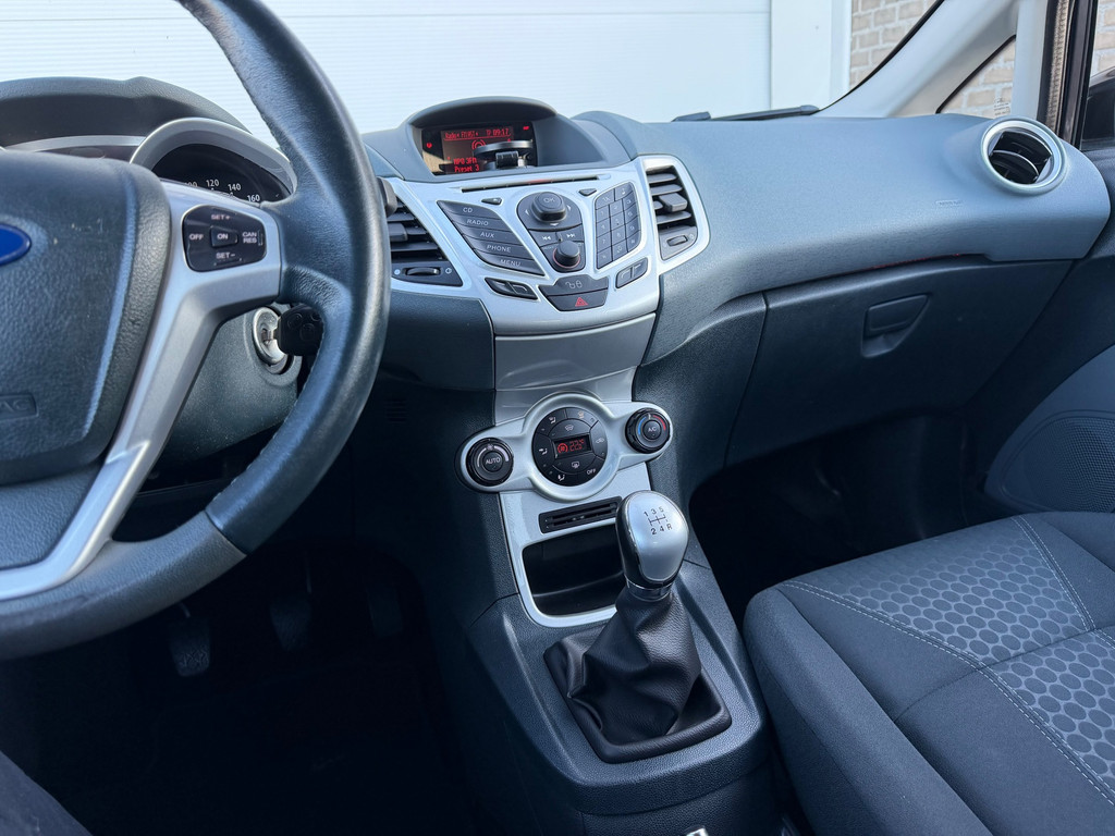 Algemene informatie: Merk: Ford. Model: Fiesta. Type: 1.25 Titanium|Airco|PDC|Cruise|BT|APK 01-27|. Aantal deuren: 3. Technische informatie: Aantal cilinders: 4. Motorinhoud: 1.242 cc. Transmissie: 5 versnellingen, Handgeschakeld. Aandrijving: Voorwielaandrijving. Bandenmaat: 195/50 R15. Acceleratie (0-100): 16,9 s. Topsnelheid: 152 km/u. Maten: Wielbasis: 248 cm. Gewichten: Ledig gewicht: 941 kg. Laadvermogen: 549 kg. GVW: 1.490 kg. Max. trekgewicht: 500 kg (ongeremd 500 kg). Interieur: Interieur: Zwart, Stof. Aantal zitplaatsen: 5. Milieu: CO₂-uitstoot: 127 g/km. Energielabel: B. Emissieklasse: Euro 5. Verbruik: Gemiddeld brandstofverbruik: 5,5 l/100km (1 op 18,2). Brandstofverbruik in...