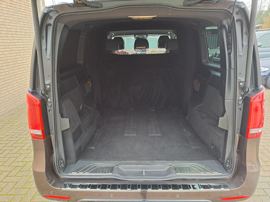 Algemene informatie: Merk: Mercedes-Benz. Model: V-klasse. Type: 250d Lang DC Exclusive. Aantal deuren: 5. Technische informatie: Aantal cilinders: 4. Motorinhoud: 2.143 cc. Transmissie: 7 versnellingen, Automaat. Aandrijving: Achterwielaandrijving. Acceleratie (0-100): 9,1 s. Topsnelheid: 204 km/u. Maten: Wielbasis: 320 cm. Gewichten: Ledig gewicht: 2.335 kg. Laadvermogen: 765 kg. GVW: 3.100 kg. Interieur: Interieurkleur: Zwart. Aantal zitplaatsen: 5. Milieu en verbruik: Gemiddeld brandstofverbruik: 6,8 l/100km (1 op 14,7). CO₂-uitstoot: 179 g/km. Emissieklasse: Euro 6. Staat: Aantal sleutels: 2. Financiële informatie: BTW: De getoonde prijs is exclusief BTW. Motorrijtuigenbelasting: ...