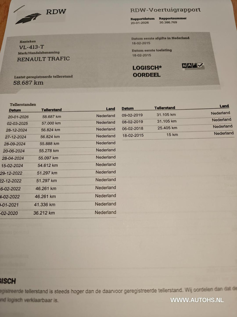 Prijs: €7.750 EUR Merk: Renault Model: Renault Trafic 1.6 dCi T27 L1H1 Générique , Apk feb. 2027 , Super km, trekhaak + imperiaal Bouwjaar: 2015 kilometerstand: 58694 Brandstof: Diesel Carrosserie: Bestelauto Kleur: Wit Transmissie: manual Kenteken: VL-413-T Registratie tot: 2027-02-18 BTW/Marge: BTW Auto| Merk | Renault |