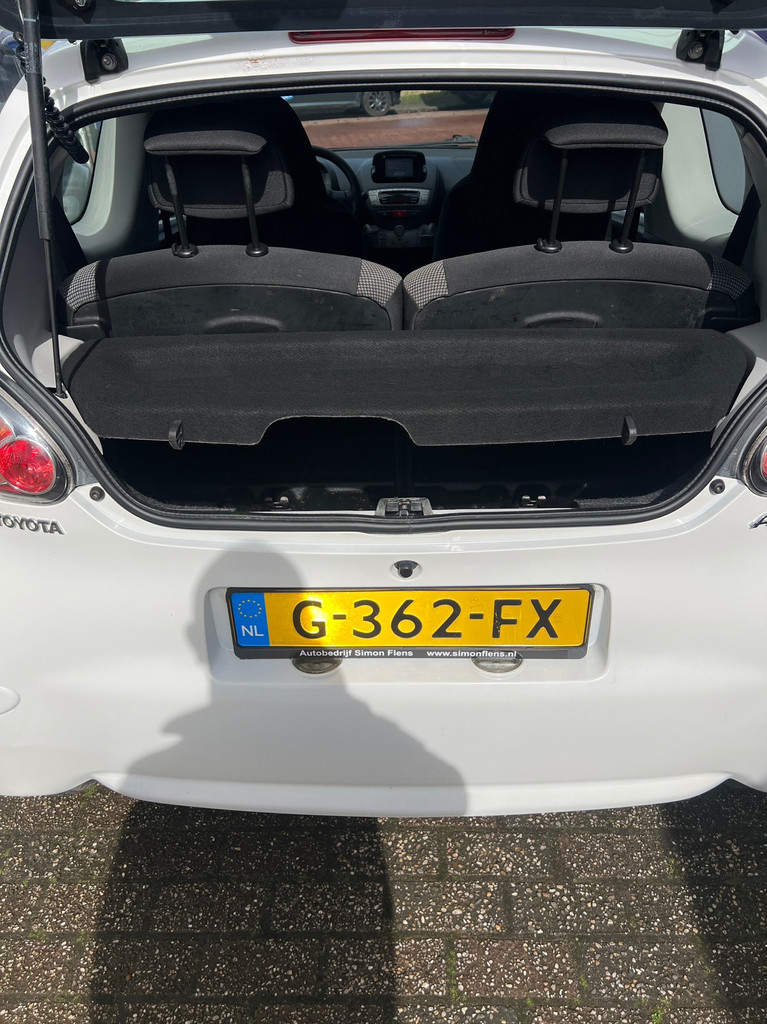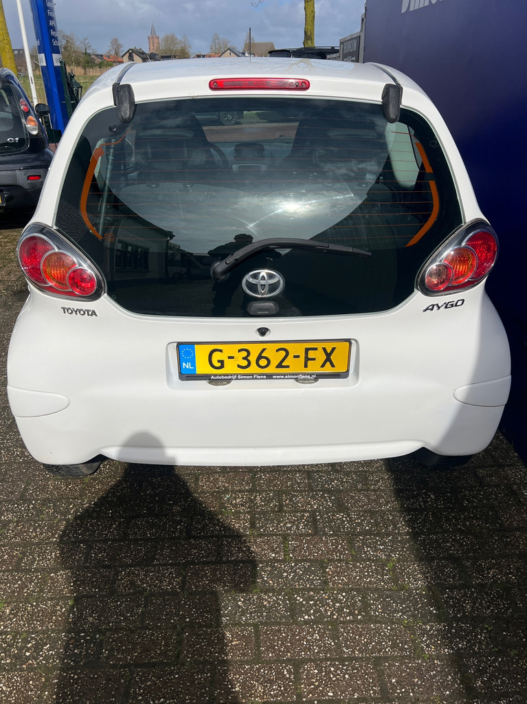 Algemene informatie: Merk: Toyota. Model: Aygo. Type: 1.0 VVT-i Dynamic Orange*AIRCO*NAVI*. Aantal deuren: 3. Technische informatie: Aantal cilinders: 3. Motorinhoud: 998 cc. Transmissie: 5 versnellingen, Handgeschakeld. Aandrijving: Voorwielaandrijving. Acceleratie (0-100): 14,2 s. Topsnelheid: 157 km/u. Maten: Wielbasis: 234 cm. Gewichten: Ledig gewicht: 795 kg. Laadvermogen: 385 kg. GVW: 1.180 kg. Interieur: Interieur: Antraciet, Stof. Aantal zitplaatsen: 4. Milieu: CO₂-uitstoot: 102 g/km. Energielabel: B. Emissieklasse: Euro 5. Verbruik: Gemiddeld brandstofverbruik: 4,4 l/100km (1 op 22,7). Brandstofverbruik in de stad: 5,3 l/100km (1 op 18,9). Brandstofverbruik op de snelweg: 3,9...