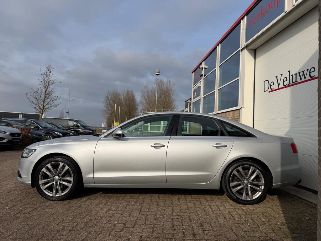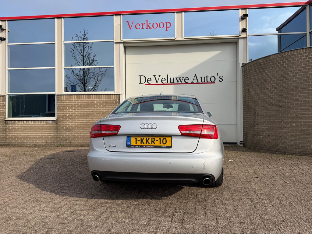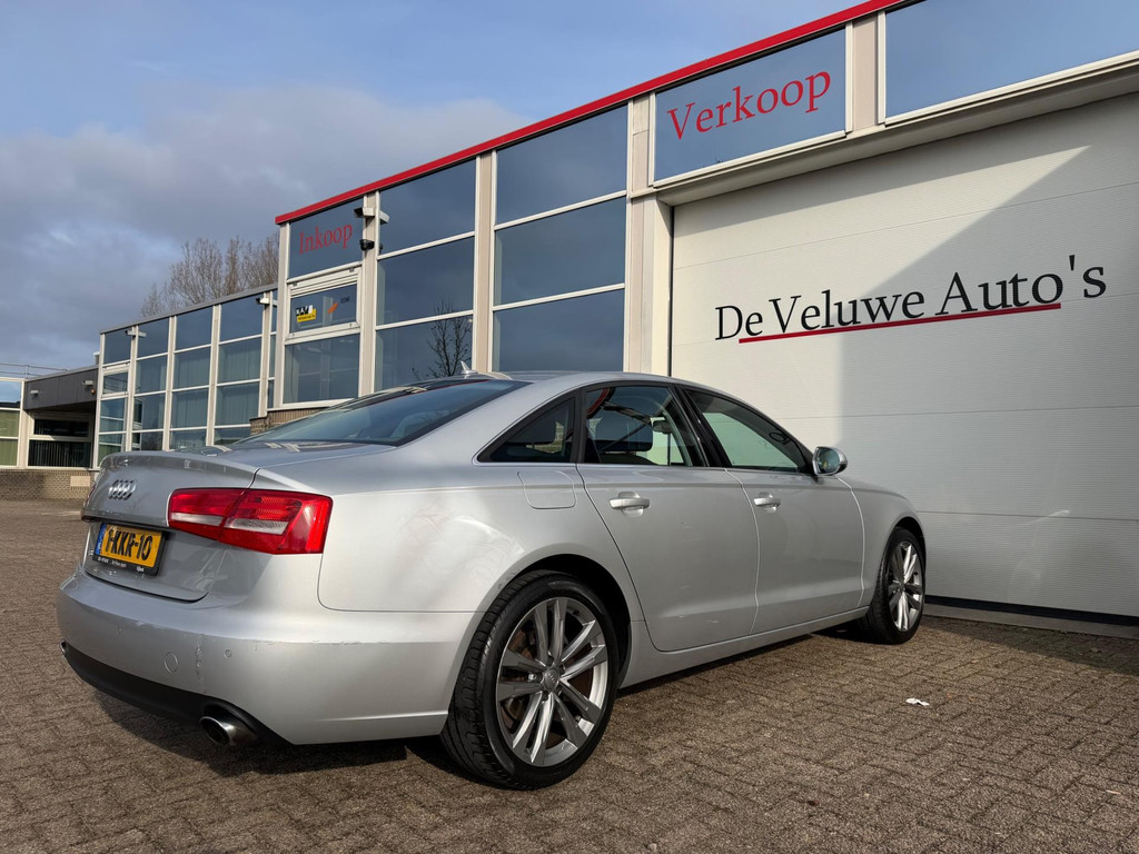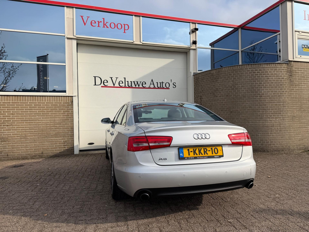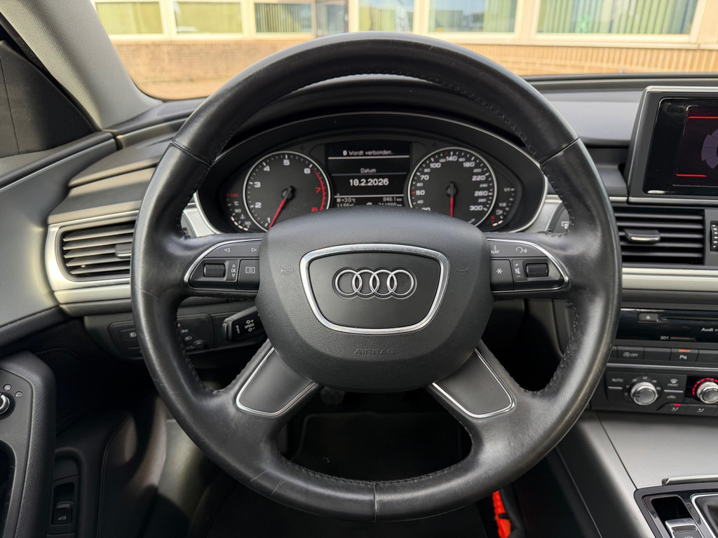 Algemene informatie: Merk: Audi. Model: A6 Limousine. Type: 2.0 TFSI Pro Line Business|Navi|PDC|NAP|. Carrosserievorm: Sedan. Technische informatie: Aantal cilinders: 4. Motorinhoud: 1.984 cc. Transmissie: 6 versnellingen, Handgeschakeld. Aandrijving: Voorwielaandrijving. Bandenmaat achter: 255/40 R19. Acceleratie (0-100): 8,1 s. Topsnelheid: 232 km/u. Maten: Wielbasis: 291 cm. Gewichten: Ledig gewicht: 1.515 kg. Laadvermogen: 605 kg. GVW: 2.120 kg. Max. trekgewicht: 1.400 kg (ongeremd 750 kg). Interieur: Interieurkleur: Zwart, grijs. Aantal zitplaatsen: 5. Milieu: CO₂-uitstoot: 151 g/km. Energielabel: A. Emissieklasse: Euro 5. Verbruik: Gemiddeld brandstofverbruik: 6,5 l/100km (1 op...