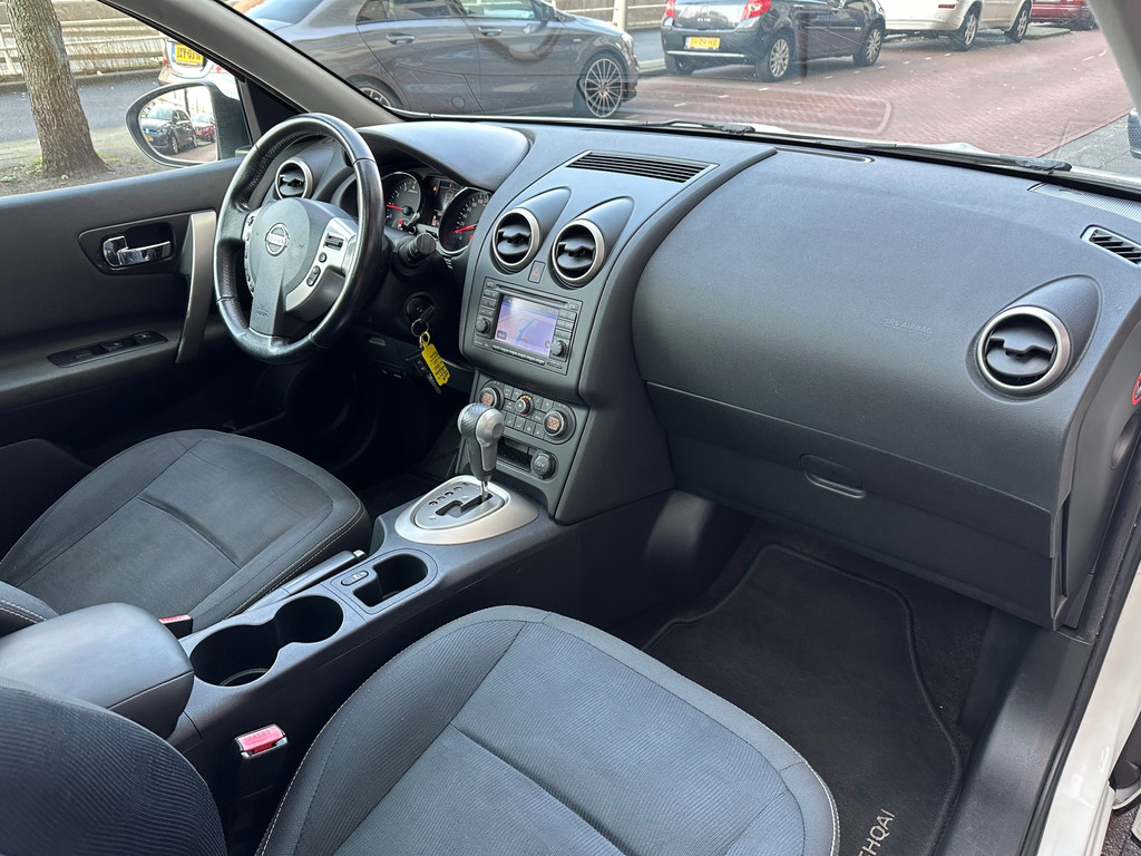 Algemene informatie: Merk: Nissan. Model: Qashqai. Type: 2.0 Connect Edition Automaat Navi Camera Pano. Aantal deuren: 5. Technische informatie: Aantal cilinders: 4. Motorinhoud: 1.997 cc. Aandrijving: Voorwielaandrijving. Bandenmaat: 215/70 R16. Acceleratie (0-100): 10,7 s. Topsnelheid: 183 km/u. Maten: Wielbasis: 263 cm. Gewichten: Ledig gewicht: 1.275 kg. Laadvermogen: 685 kg. GVW: 1.960 kg. Max. trekgewicht: 1.200 kg (ongeremd 685 kg). Interieur: Bekleding: Stof. Aantal zitplaatsen: 5. Milieu: CO₂-uitstoot: 179 g/km. Energielabel: D. Emissieklasse: Euro 5. Verbruik: Gemiddeld brandstofverbruik: 7,6 l/100km (1 op 13,2). Onderhoud, historie en staat: APK: Nieuwe APK bij aflevering...