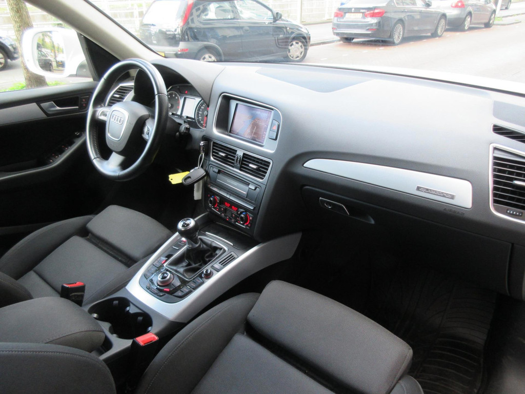 Algemene informatie: Merk: Audi. Model: Q5. Type: 2.0 TFSI quattro Navi Clima Stoelverwarming PDC. Aantal deuren: 5. Technische informatie: Aantal cilinders: 4. Motorinhoud: 1.984 cc. Transmissie: 6 versnellingen, Handgeschakeld. Aandrijving: Vierwielaandrijving. Bandenmaat: 255/45 R20. Acceleratie (0-100): 7,6 s. Topsnelheid: 222 km/u. Maten: Afmetingen (LxBxH): 463 x 188 x 165 cm. Wielbasis: 281 cm. Gewichten: Ledig gewicht: 1.695 kg. Laadvermogen: 635 kg. GVW: 2.330 kg. Max. trekgewicht: 2.000 kg (ongeremd 750 kg). Interieur: Bekleding: Stof. Aantal zitplaatsen: 5. Milieu: CO₂-uitstoot: 188 g/km. Energielabel: C. Emissieklasse: Euro 5. Verbruik: Gemiddeld brandstofverbruik: 8,4 l/100km...