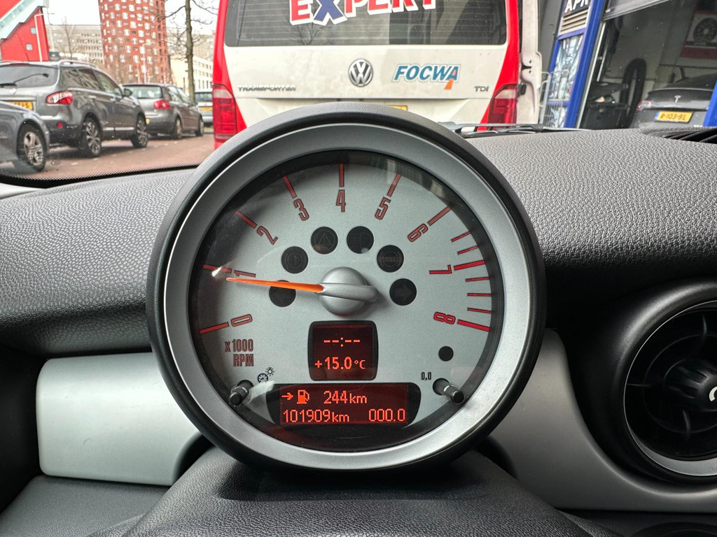 Algemene informatie: Merk: Mini. Model: Mini. Type: 1.6 Cooper Pepper Clima Pano. Aantal deuren: 3. Technische informatie: Aantal cilinders: 4. Motorinhoud: 1.598 cc. Transmissie: 6 versnellingen, Handgeschakeld. Aandrijving: Voorwielaandrijving. Bandenmaat: 175/65 R15. Acceleratie (0-100): 9,1 s. Topsnelheid: 203 km/u. Maten: Wielbasis: 247 cm. Gewichten: Ledig gewicht: 1.040 kg. Laadvermogen: 475 kg. GVW: 1.515 kg. Max. trekgewicht: 750 kg (ongeremd 500 kg). Interieur: Bekleding: Stof. Aantal zitplaatsen: 4. Milieu: CO₂-uitstoot: 129 g/km. Staat: Aantal sleutels: 2 (2 handzenders). Financiële informatie: Motorrijtuigenbelasting: € 119 - € 129 per kwartaal. Autostad Den Haag is een...