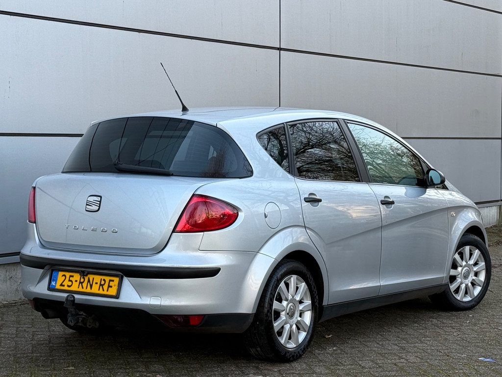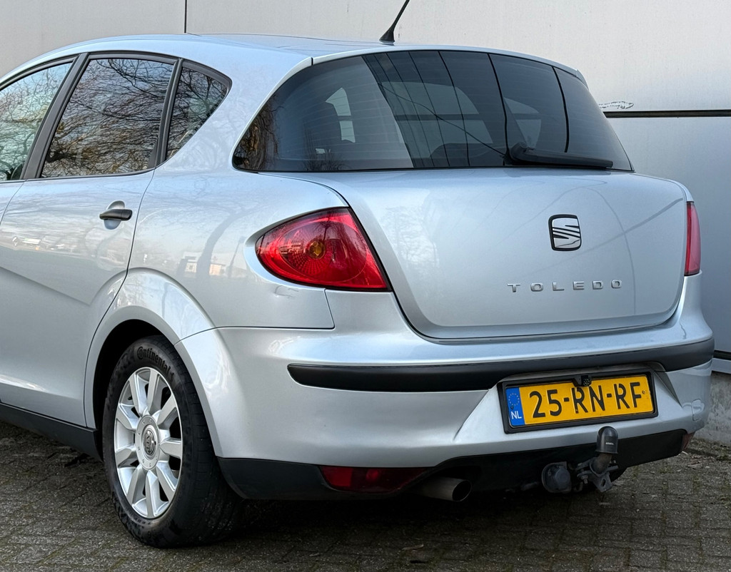 Algemene informatie: Merk: Seat. Model: Toledo. Type: 1.6 Reference Camera |Carplay |Trekhaak |Airco |Nap |Boekjes. Aantal deuren: 5. Technische informatie: Aantal cilinders: 4. Motorinhoud: 1.595 cc. Aandrijving: Voorwielaandrijving. Acceleratie (0-100): 12,9 s. Topsnelheid: 181 km/u. Maten: Wielbasis: 258 cm. Gewichten: Ledig gewicht: 1.319 kg. Laadvermogen: 625 kg. GVW: 1.944 kg. Max. trekgewicht: 1.200 kg (ongeremd 700 kg). Interieur: Aantal zitplaatsen: 5. Milieu: CO₂-uitstoot: 185 g/km. Energielabel: C. Emissieklasse: Euro 4. Verbruik: Gemiddeld brandstofverbruik: 7,7 l/100km (1 op 13,0). Brandstofverbruik in de stad: 10,5 l/100km (1 op 9,5). Brandstofverbruik op de snelweg: 6,1...