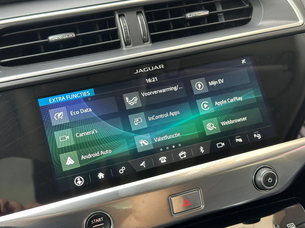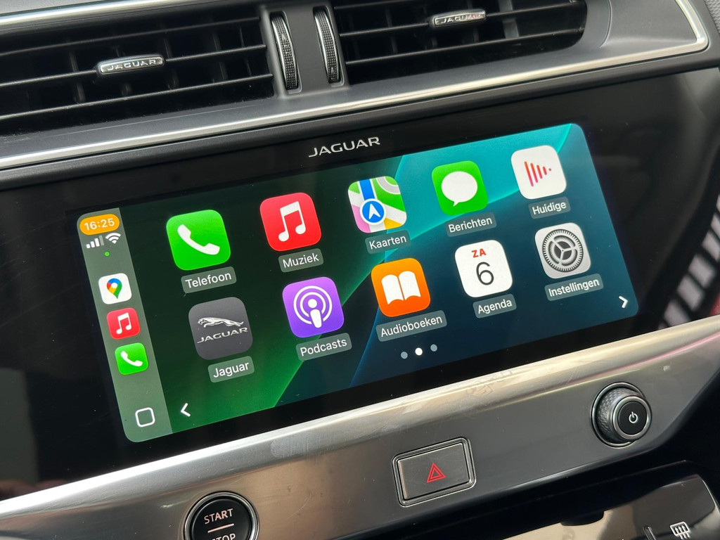 Algemene informatie: Merk: Jaguar. Model: I-PACE. Type: EV400 S 90 kWh Leer Navi Camera Carplay Pano. Aantal deuren: 5. Aandrijving: Actieradius: 470 km. Asconfiguratie: Aandrijving: Vierwielaandrijving. Bandenmaat: 235/65 R18. Prestaties: Acceleratie (0-100): 4,8 s. Topsnelheid: 200 km/u. Maten: Afmetingen (LxBxH): 468 x 201 x 156 cm. Wielbasis: 299 cm. Gewichten: Ledig gewicht: 2.144 kg. Laadvermogen: 526 kg. GVW: 2.670 kg. Max. trekgewicht: 750 kg (ongeremd 750 kg). Accu: Accu: 90 kWh. Accu laden: Type 2, 1-fase, 7.3 kW, 40 km actieradius per uur, compleet vol in 25 uur. Accu snelladen: Combined Charging System, 340 km actieradius per uur, compleet vol in 4 uur en 5 minuten. Interieur...: